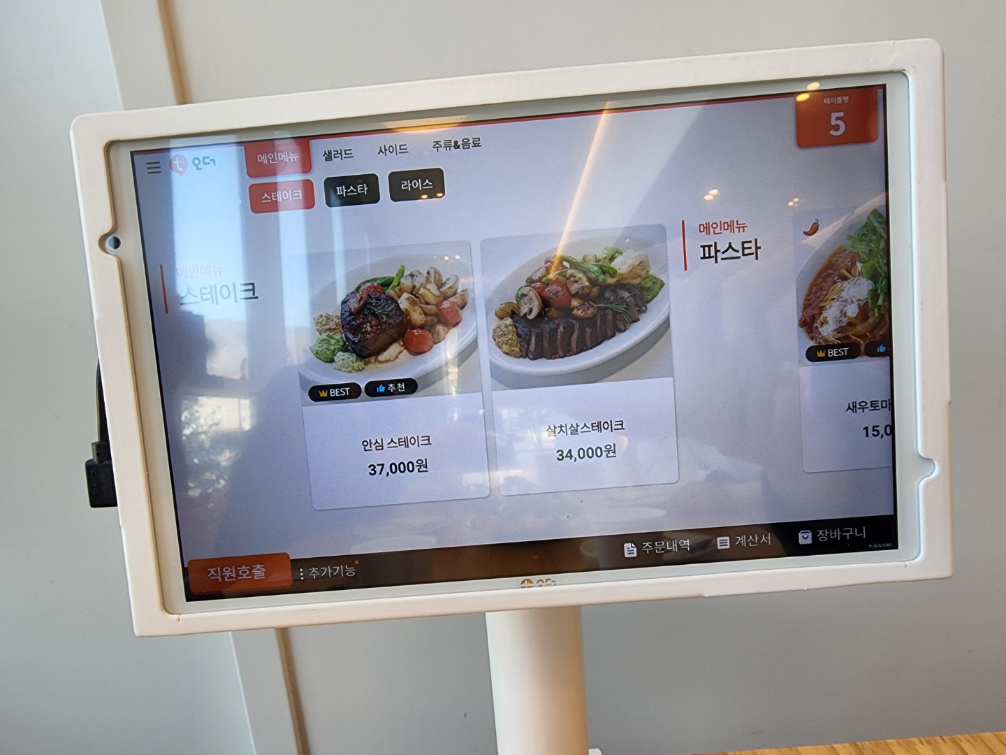각 자리마다 메뉴주문할수 있는 패드가 고정되어있습니다.