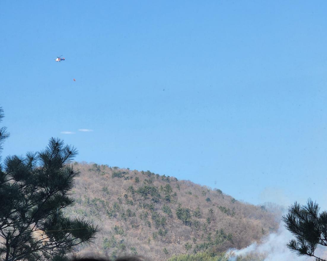 여기서 밥 한참 먹고있는데 북면쪽에 산불이 엄청 크게 났어요