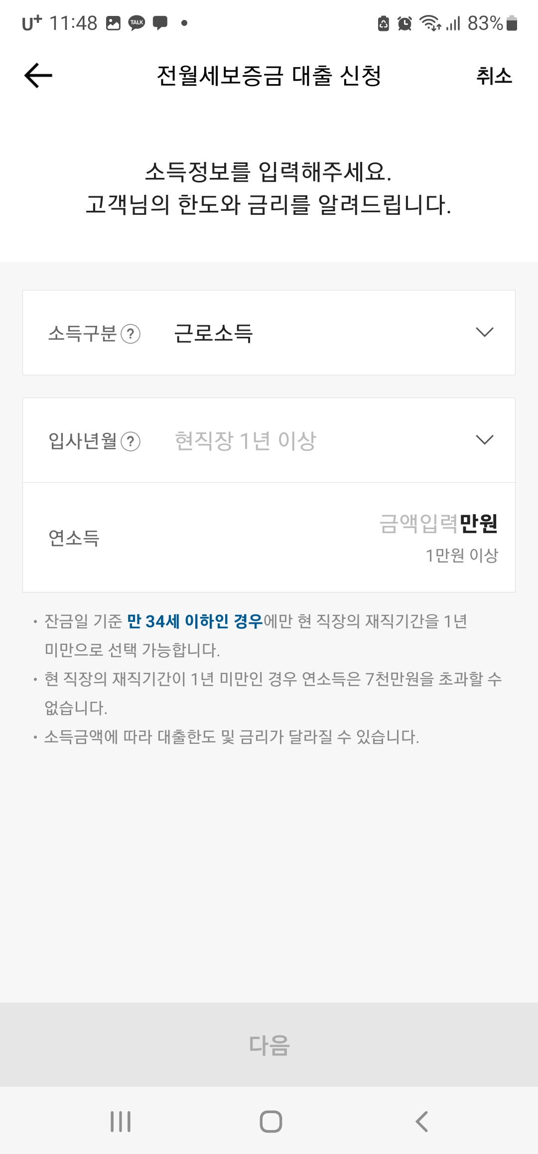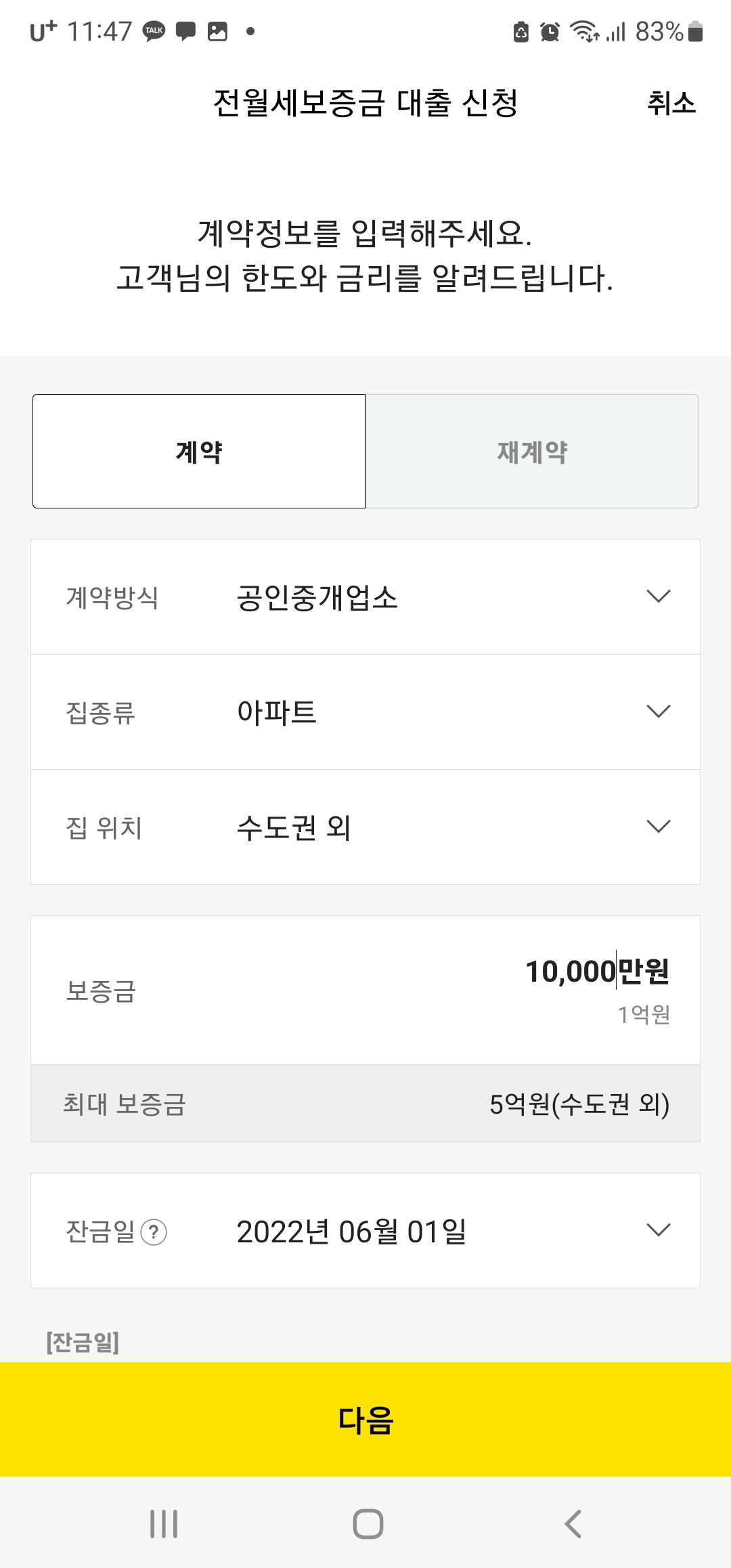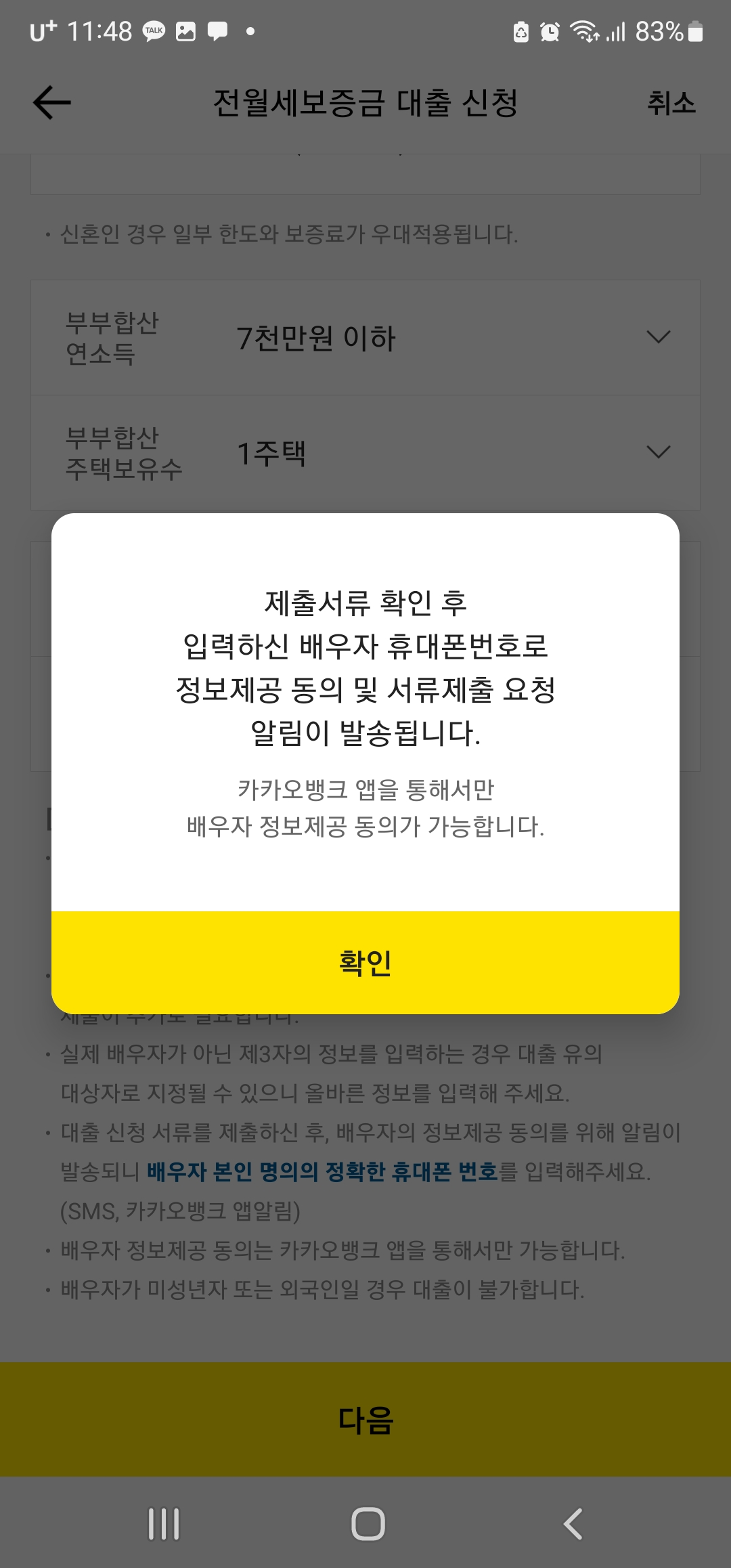 [카카오은행]전세자금 대출 - 1억 대출시 나의 한도 확인하기 본문