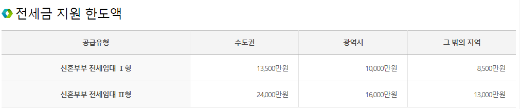 - (Ⅱ형 임대보증금) 한도액 범위 내에서 전세지원금의 20%
