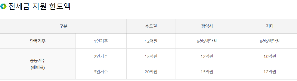 단, 전세금 총액은 호당 지원한도액의 150% 이내로 제한(셰어형은 200% 이내)