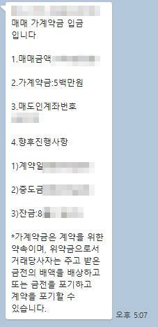 가계약금 500만원 입금하게 되면 연락 달라고 했습니다.