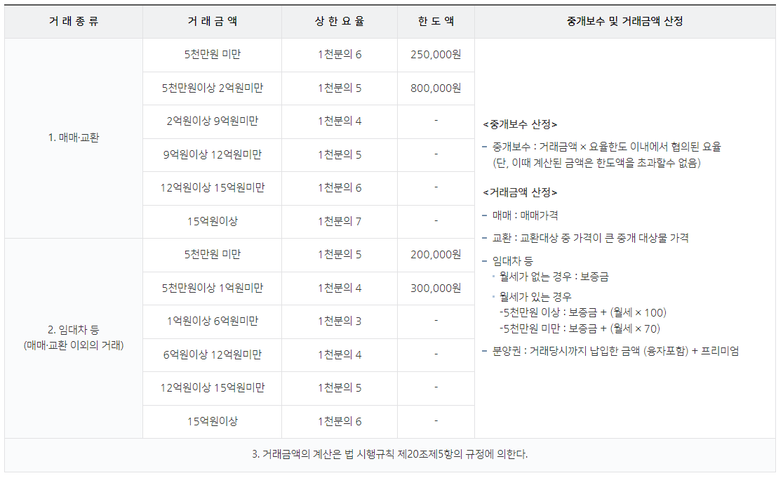 [부동산 중개보수] 주택, 토지, 상가, 오피스텔, 월세 본문
