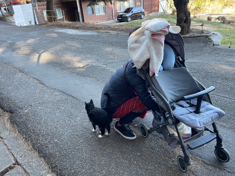 지나가던 고양이가 엉덩이로 애교를 부립니다!