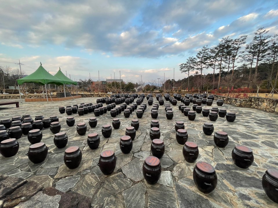 전통장 담그기 체험을 위해 준비된 장독대