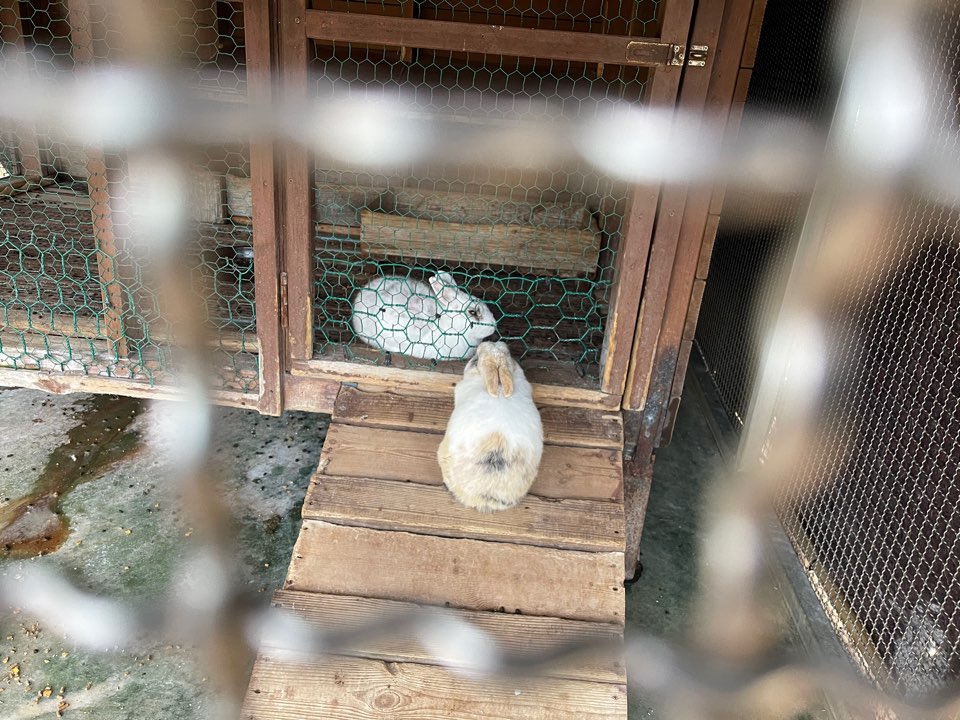 토끼집에 들어와서 먹이를 쪼아먹고 있었습니다.