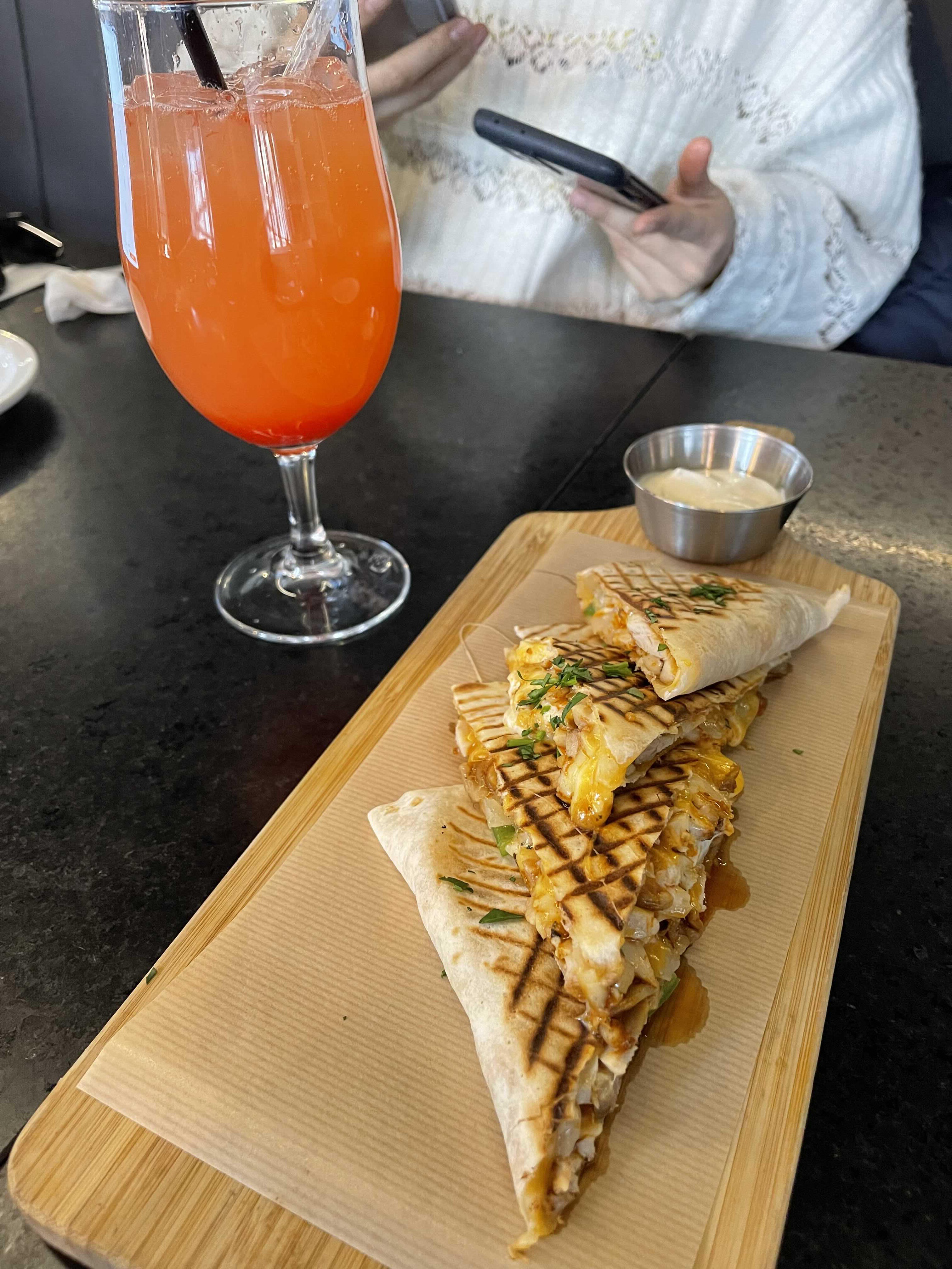 비프스테이크와 오븐에 구운 치킨을 또띠아에 싸먹는 겁니당