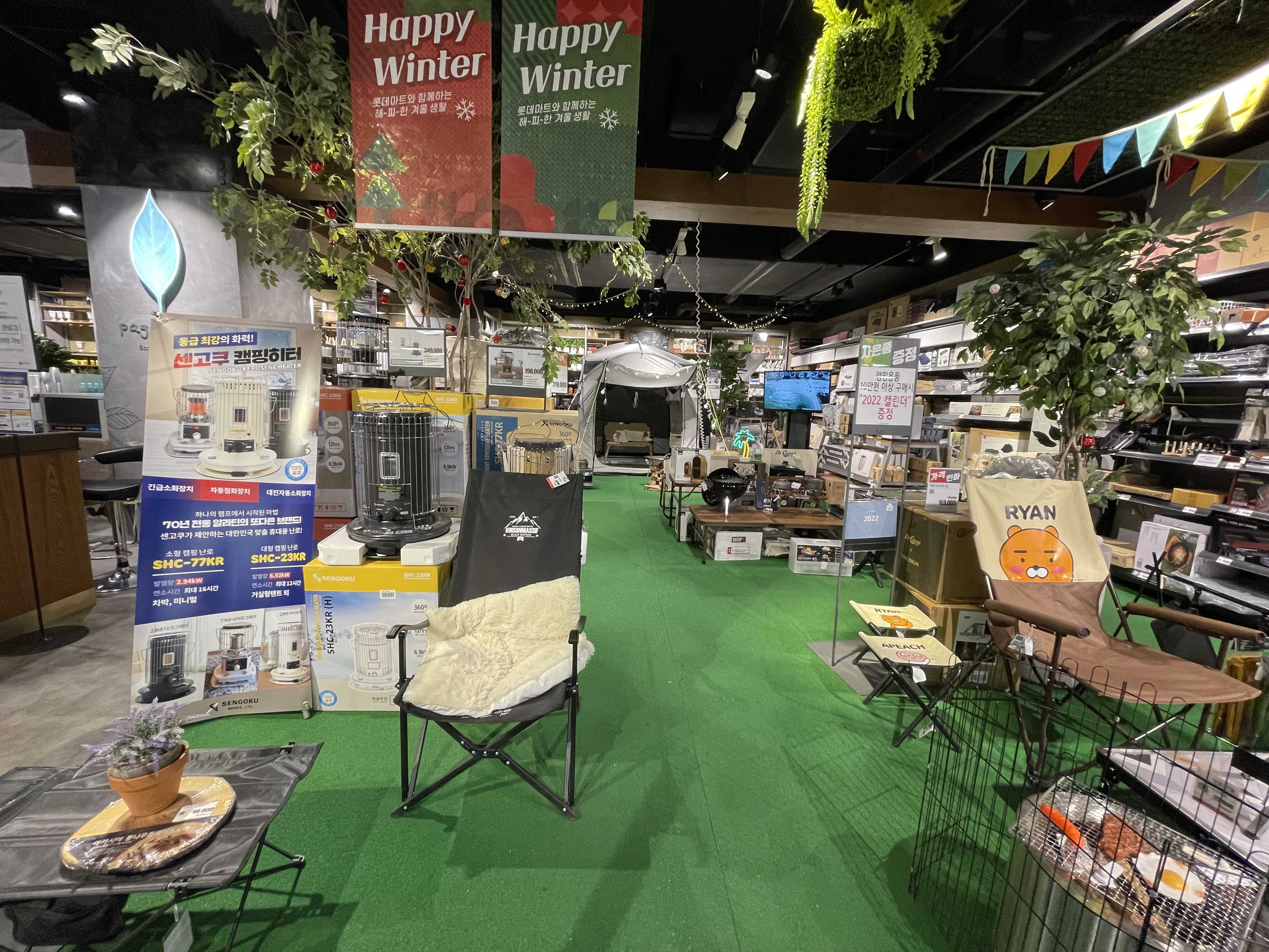 캠핑족이 늘어나서 널찍하게 캠핑관련 소품들 있습니다