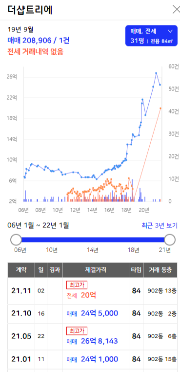 최근거래 전세가 20억, 매매는 25억 전후 합니다.