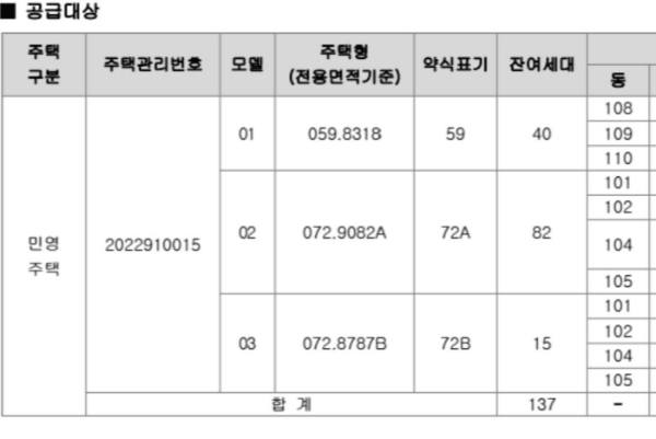 137세대 미분양 났습니다