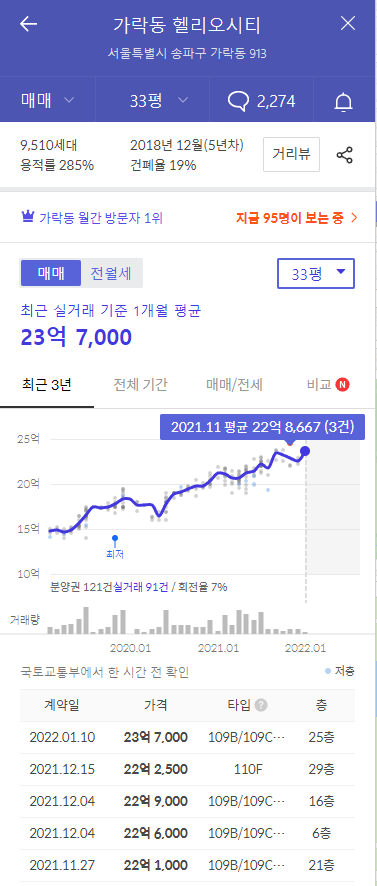 마지막 거래가 22년 1월이었고, 23억 7천이었습니다