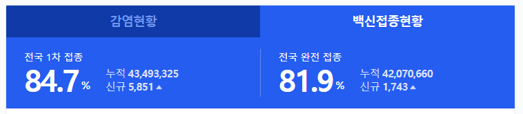 22.02.05일 기준 전국 2차 접종률 85.9%