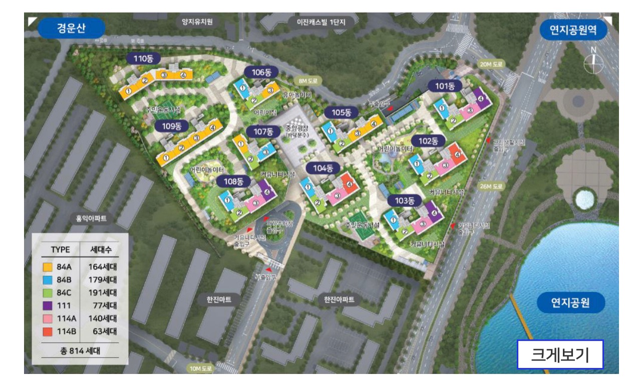 커뮤니티시설을 굉장히 넓게 자리 잡았습니다
