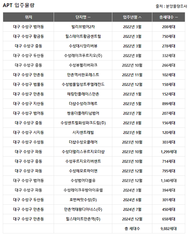 대구 아파트 입주물량입니다.