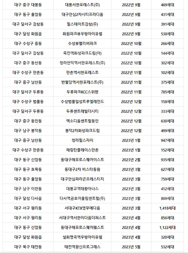 수성구는 작은 세대수로 아파트가 소규모로 공급이 됩니다.