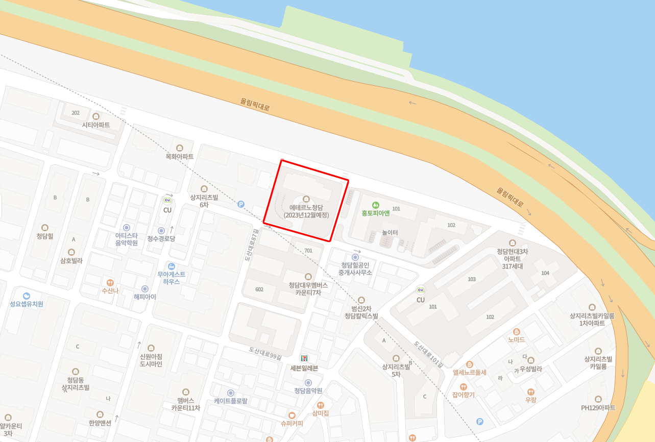 에테르노 청담은 sm엔터 청담 사옥 바로 옆,