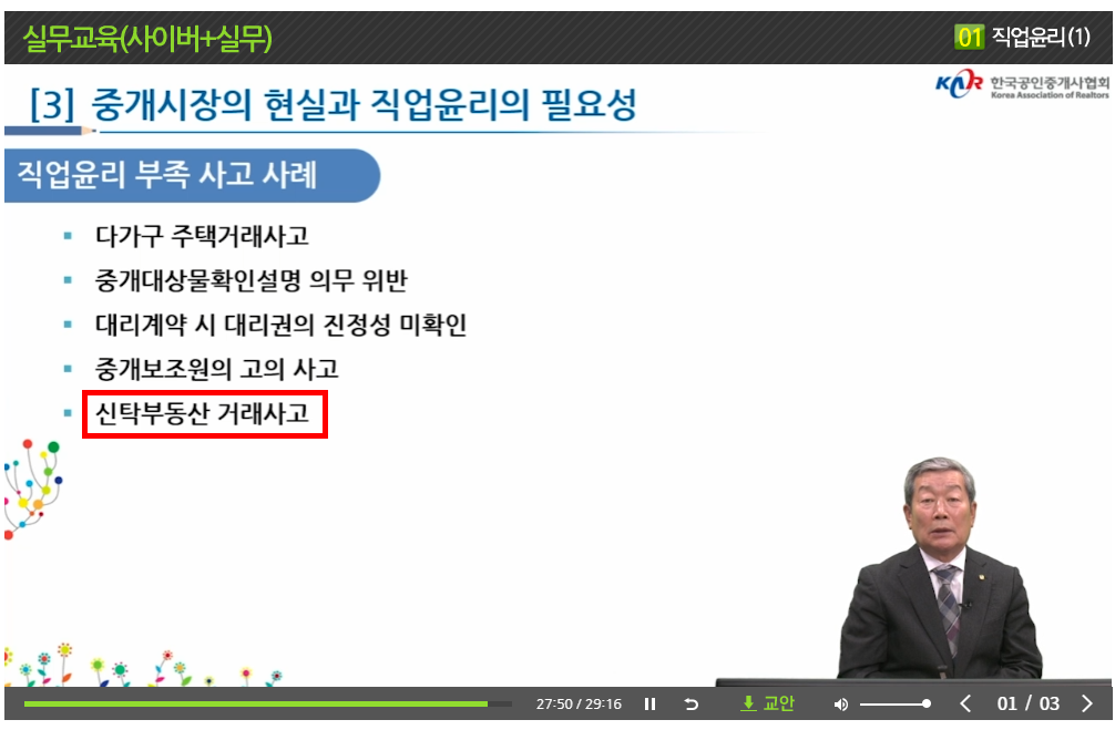 다른 중개사분들은 형식적인거라 대충들어도 된다지만